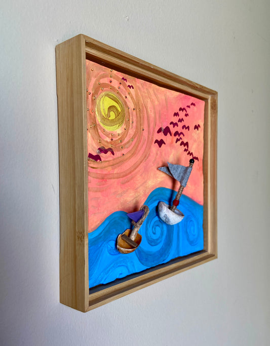 Seaside Ships — Original Mixed Media Painting